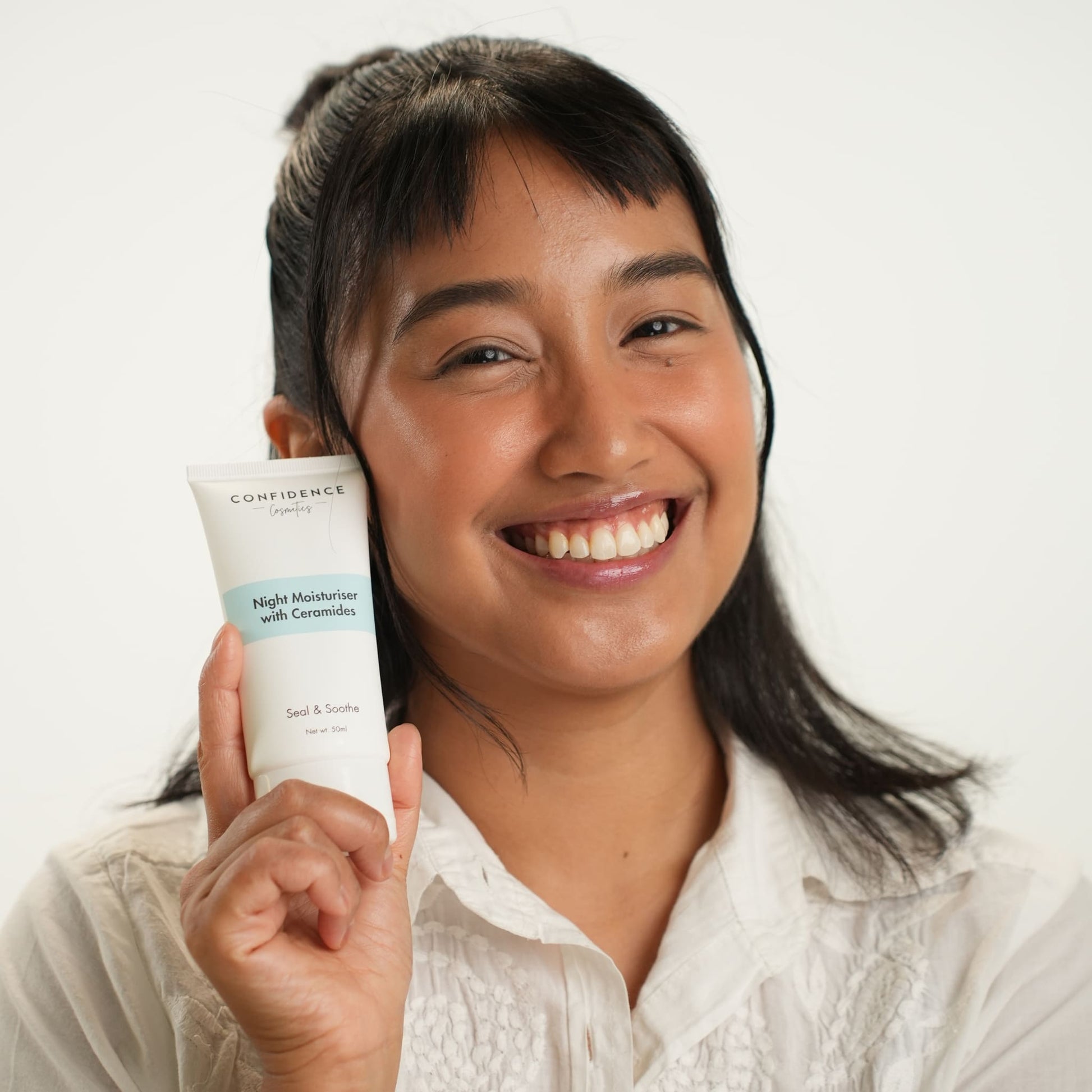 Our renewed Seal & Soothe Night Moisturiser is now a complete gel texture that is lightweight yet super hydrating packed with amazing ingredients like Niacinamide, Ceramides and Olive Squalane.