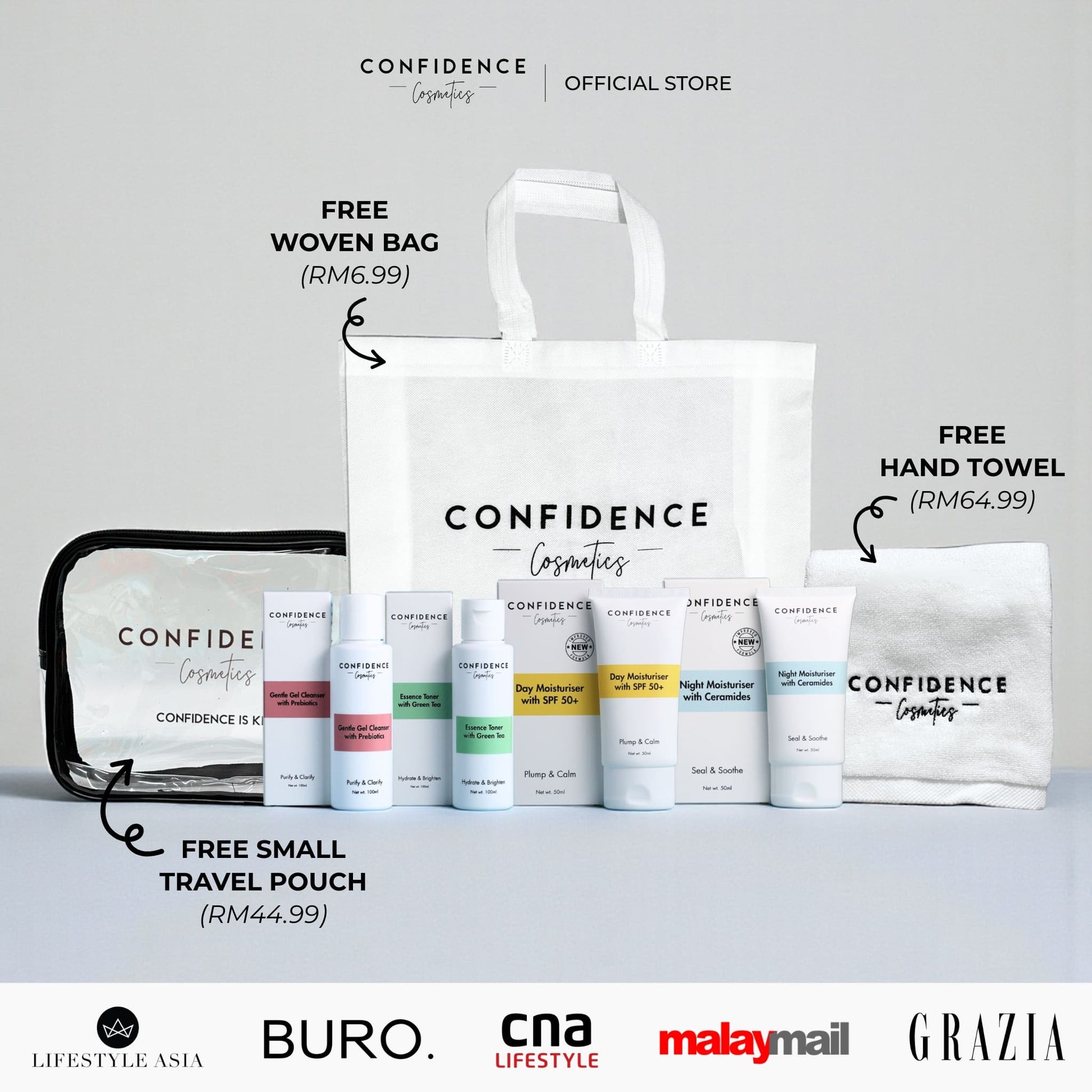 Simply use our Purify & Clarify Gentle Gel Cleanser for AM and PM, follow it up with our Hydrate & Brighten Essence Toner then seal in all the goodness with our Plump & Calm Day Moisturiser in the day and our Seal & Soothe Night Moisturiser for the night time.